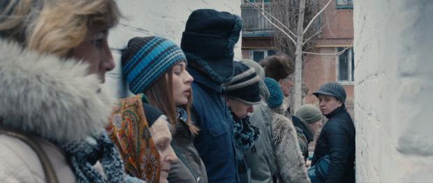 Stylistically, Loznitsa and his cinematographer Oleg Mutu favor lengthy long shots and tracking shots, such as through the labyrinth of a “bomb shelter” where desperate civilians subsist in deplorable conditions. When a chicly-clad young blonde beauty arrives to retrieve her mother and return her to a safe, far more comfortable apartment, her elderly parent refuses to go. What does it mean? Is her mum’s refusal to leave an act of collective solidarity with the other bomb shelter dwellers, most of whom are old enough to have remembered the socialist ethos of sticking together when Ukraine was part of the Soviet Union? Is the attractively clad woman a prostitute? Well, not literally anyway – she’s an apparatchik who works for local politicians.