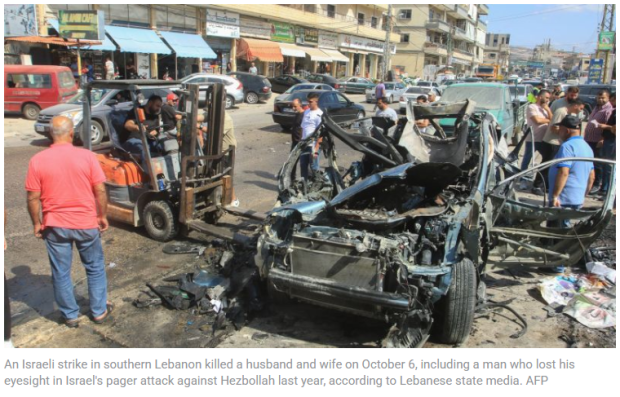 The Lebanese health ministry also reported Monday's attack and confirmed, "two people were killed and one wounded when an Israeli drone strike targeted a car on the Zebdin road in the Nabatiyeh district" of southern Lebanon, reported the New Arab Staff and Agencies on October 6.