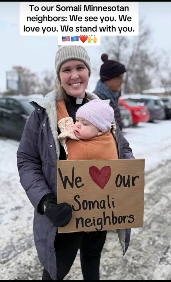 Despite the subfreezing temperatures, Trump's lawless policies, and ICE's horror stories, this unidentified Minnesota woman took to the streets of Minneapolis with her son to show her humanity. Photo credit: (Social media)
