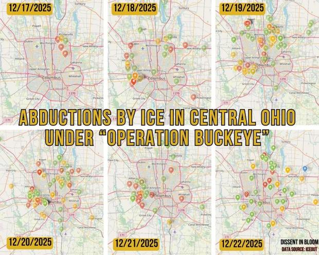 This is a documented (but incomplete) map of their abductions and the level of escalation throughout the week. Data is from ICEOUT.