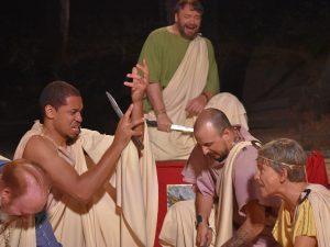 In addition, Rivers – who has trod the boards of WGTB’s amphitheater for 27 years and is also known for his reenactments of MLK – doubles as Caesar’s soothsayer, who ominously warns the Roman dictator to “beware the Ides of March” (which either warns Julius Caesar regarding something that’s going to happen on March 15 or about a 2011 George Clooney movie).