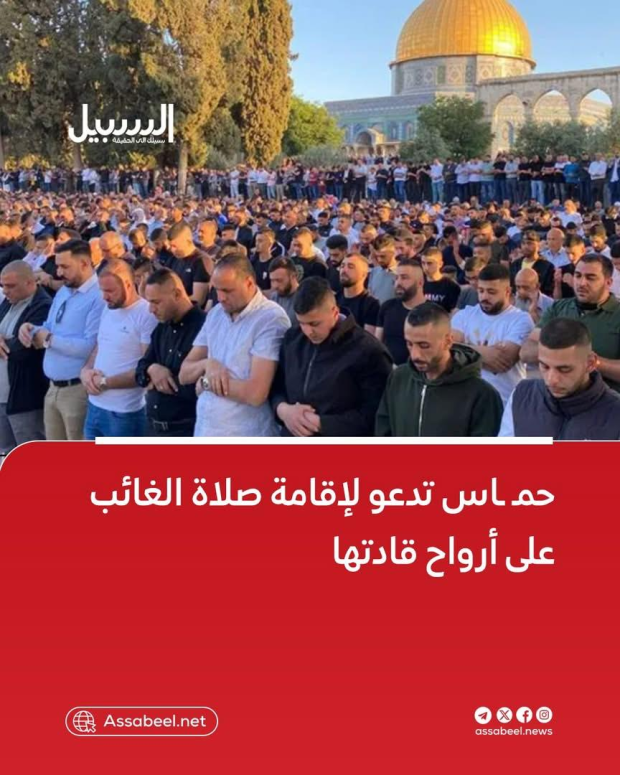 After the Islamic Resistance Movement (Hamas) called on the Palestinian people and the Arab and Islamic nations to perform the funeral prayer in absentia for the souls of its martyred leaders after Friday prayers in all mosques in Palestine and Islamic centers around the world. Shamefully, the Jordanian Ministry of Endowments banned the performance of funeral prayers in absentia for Abu Obeida and the 4 resistance leaders (Muhammad Sinwar, Muhammad Shabana, Raed Saad, and Hakam Al-Issa.) and issued an order to all mosques' imams prohibiting the mention of their names in Friday sermons.
