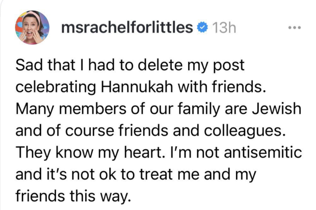 1. Miss Rachel is the real victim of smear campaign here for sure 2. Ms. Rachel is a preschool teacher who speaks up for starving children in Gaza. That is not antisemitism. I hope thousands will join me in standing up for her.