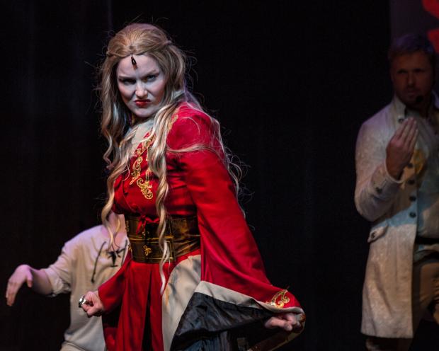 Adorned in a flowing blonde wig, Mandie Hittleman (who also choreographs the mayhem) plays Daenerys Targaryen. To tell you the truth, as portrayed by Emilia Clarke, the “Breaker of Chains” had been my favorite character on the program - until Daeny girl went all Lt. Calley in the final season and got her comeuppance. Alas, the so-called “Mother of Dragons’” fire breathing offspring never make an appearance, which is only to be expected when a low budge stage production attempts to tackle a big budget television series and its special effects. Even worse, unlike Clarke, Hittleman does her “nude” scene in a bodysuit.